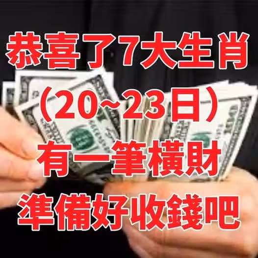 恭喜了7大生肖,在未來三天(20到23日)即將有一筆橫財!準備好收錢吧!