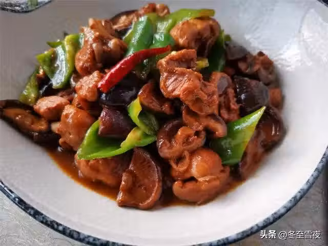 10.到時間後,加入鹽,開大火收汁,剩少許湯汁時,下入尖椒塊翻炒均勻,關火,盛出裝盤即可。