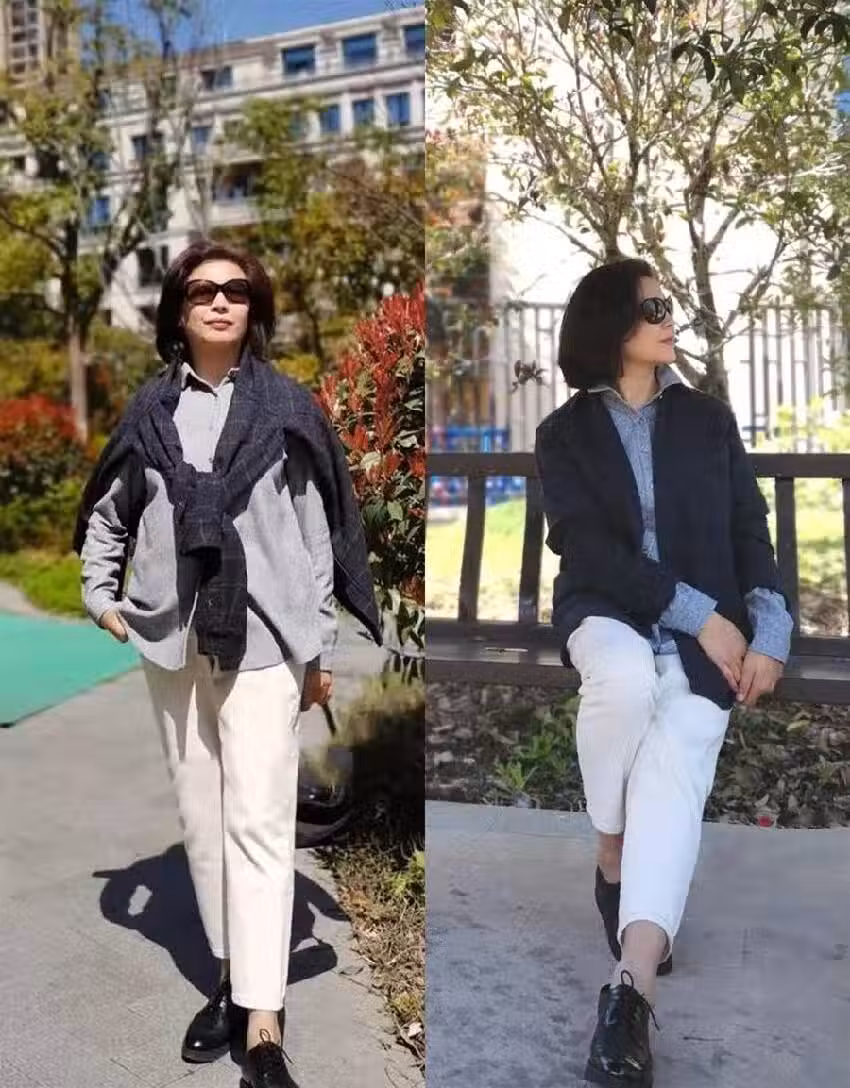 如果中年女人的臉部膚色不夠白皙,那麼深色的西裝外套是更適合我們的款式選擇。