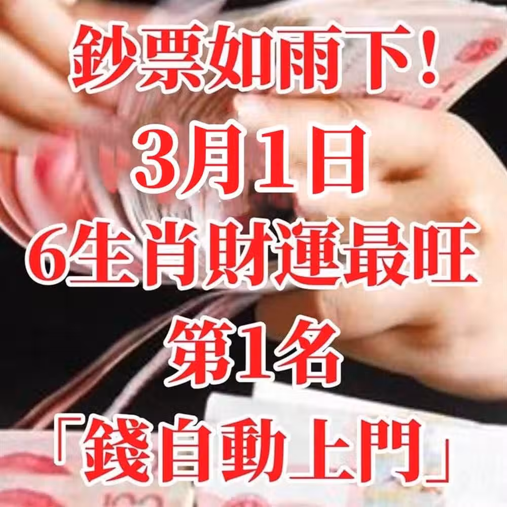 【3月1日】6生肖財運最旺,第1名「錢自動上門」