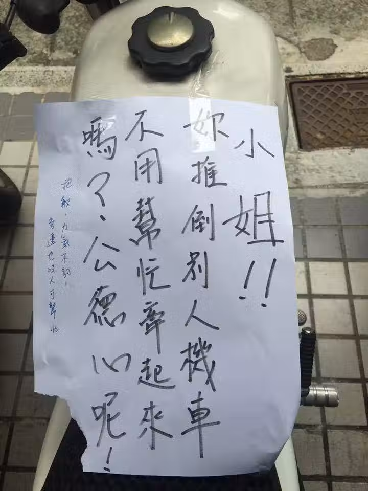 他的愛車「被惡意推倒」7PUPU留字條給對方 隔天對方「回話道歉」卻讓他氣瘋了!
