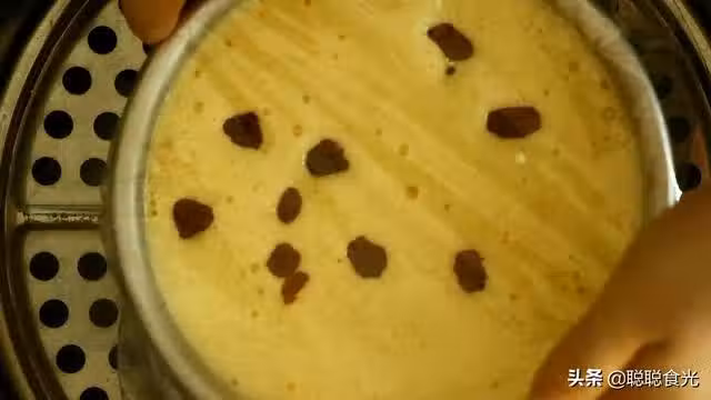 步驟八:把蛋糕放入蒸鍋中,開水上鍋,千萬不要冷水上鍋蒸,蓋上鍋蓋蒸40分鐘。蒸的過程中全程要中火,保證蒸汽均勻,蒸好之後不要立刻打開鍋蓋,蛋糕遇冷會回縮,關火之後再悶5分鐘再打開蓋子。