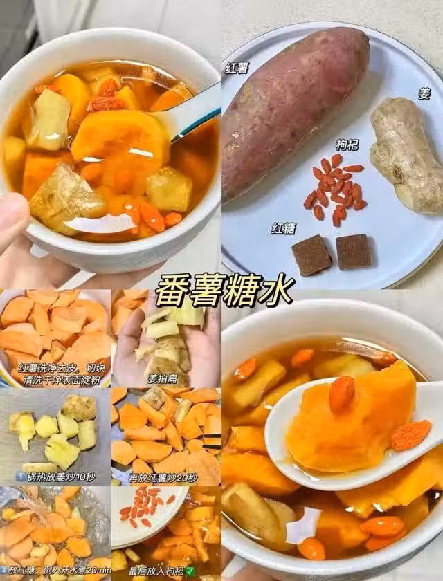 - 接著放入紅糖,倒入開水煮20分鐘,最後放入枸杞。