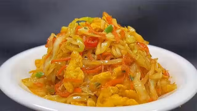 食材:雞蛋、包菜、粉絲、胡蘿蔔、生抽、蚝油、老抽、鹽