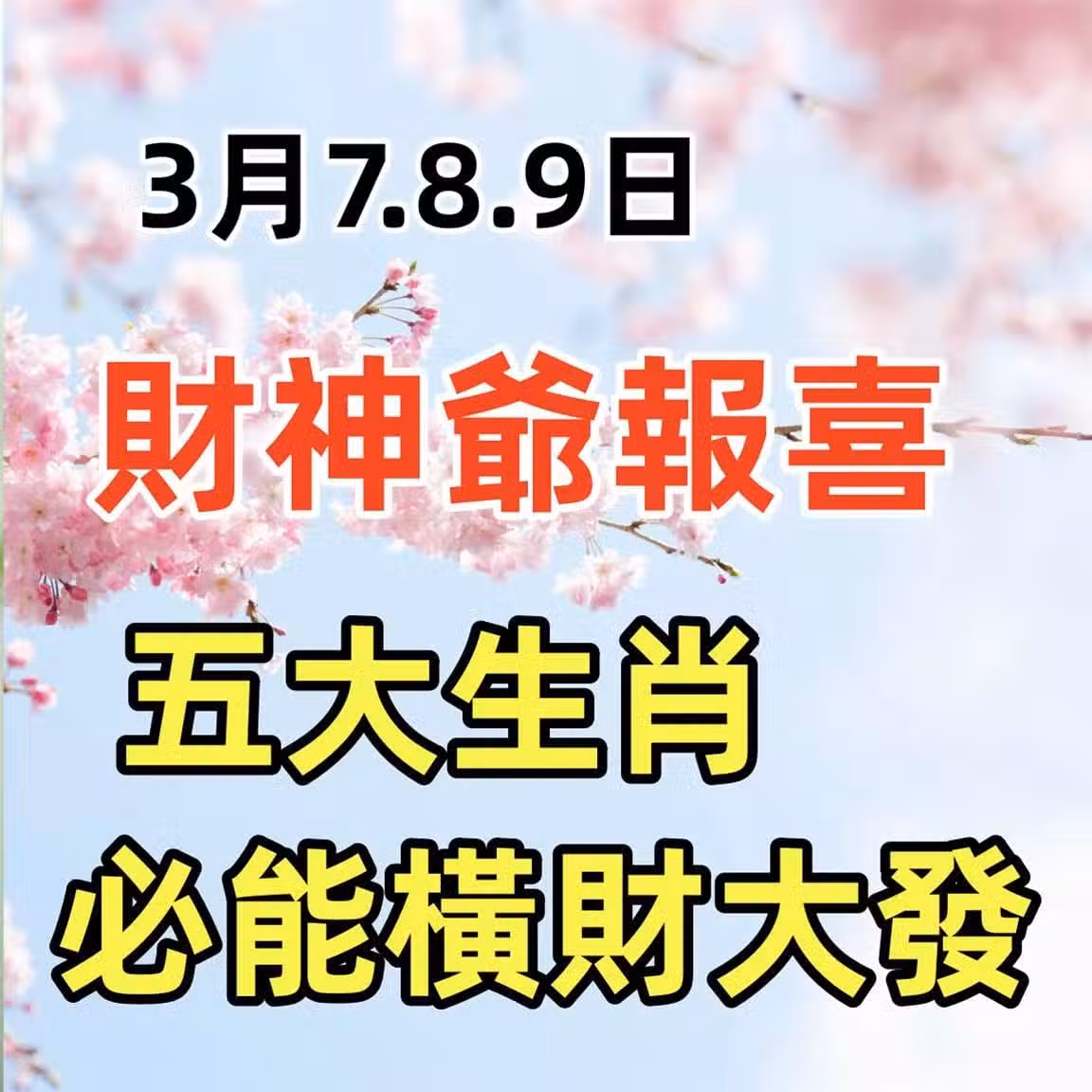 3月7.8.9日財神爺報喜,必能橫財大發的生肖有你嘛