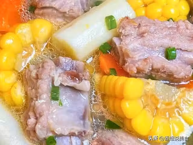 準備食材:排骨,玉米,山藥,胡蘿蔔,薑片,蔥花。