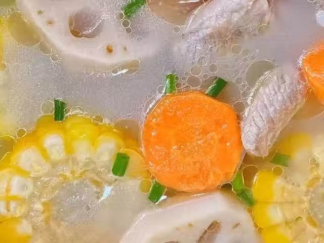 1、蓮藕和胡蘿蔔削掉外皮,清洗乾淨後切成小塊。玉米洗凈後剁成小塊。