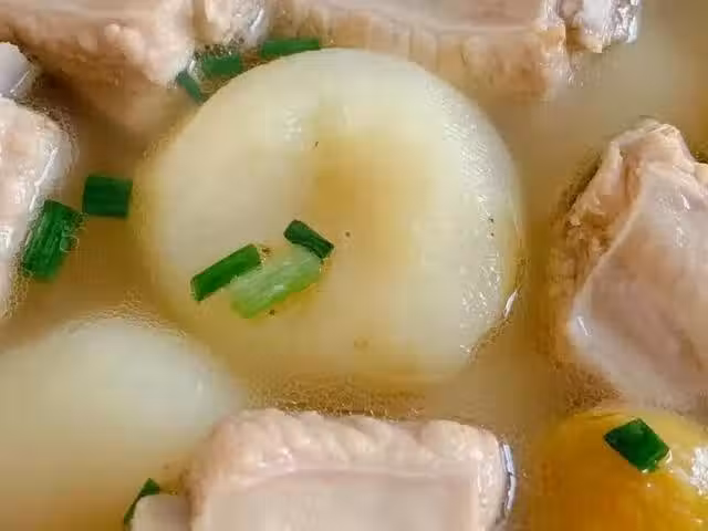 準備食材:馬蹄,板栗,排骨,枸杞子,蔥花,薑片。