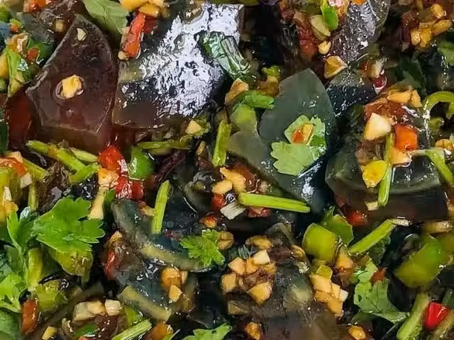 準備食材:皮蛋,青椒,蒜末,剁椒,香菜,蔥花。