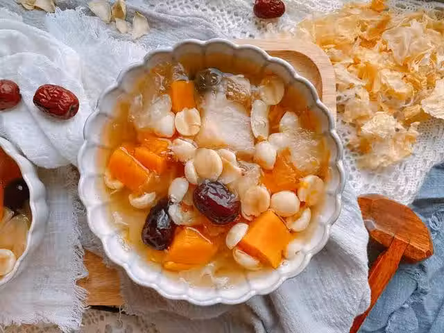 【原材料】銀耳、南瓜、蓮子、秋梨、百合、紅棗、冰糖;