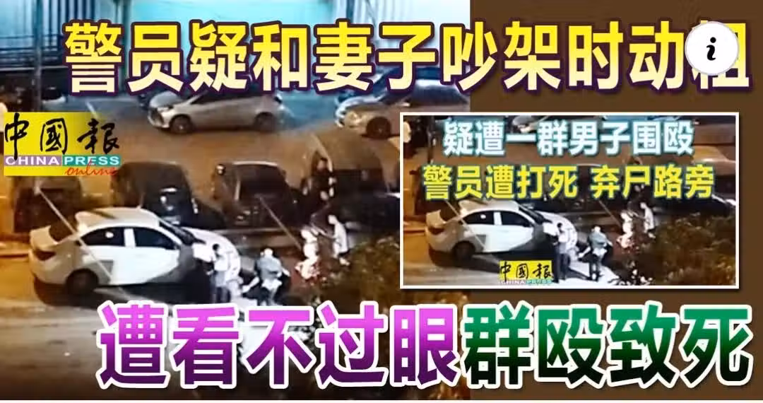 (加影23日訊)警方揭露,今日凌晨疑被人打死的警察,不排除當時和妻子吵架時動粗,引起他人不滿後,結果遭一群男子暴打致死!