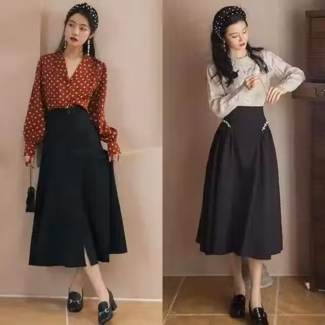 不同下裝展現出來的美感也不一樣,長裙的款式有很多,大家在挑選時還是要多注意設計問題才行,穿搭小白可以優先選擇純色款式的長裙。 這種長裙的遮肉效果很好,而且上手難度不高。