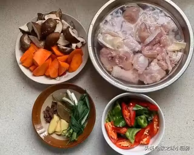 第二步:鍋內加入適量的水,把雞腿的水倒掉重新用流動水沖洗乾淨,然後冷水下入鍋中,加入蔥結,薑片,料酒,把火力開到最大,待鍋內燒開後撇去表面的雜質,最後倒出再用清水多清洗幾遍,因為表面還會有很多的雜質粘在上面。