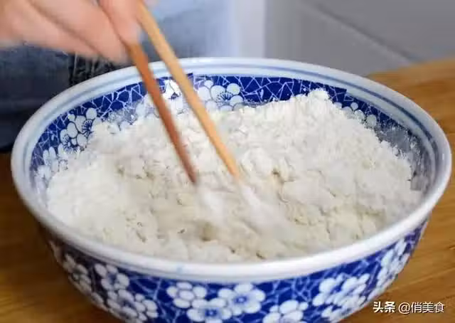2、接下來我們先做發麵,500克普通麵粉加入酵母粉3克,白糖2克,再準備240毫升30度左右的溫水,邊加水邊用筷子攪拌成絮狀,接著就用手揉成一個麵糰,將麵糰揉到光滑後封上保鮮膜準備發酵啦。很多網友會覺得奇怪為什麼要發麵呢?發麵主要可以起到蓬鬆的作用。