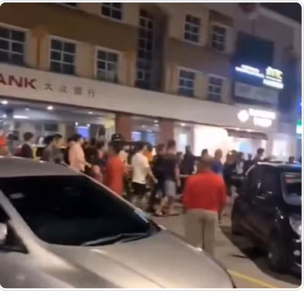 網傳一則視頻顯示,大約50名男子圍聚在街上互相叫罵,有的還非常激動往前方衝去,疑似在打群架。