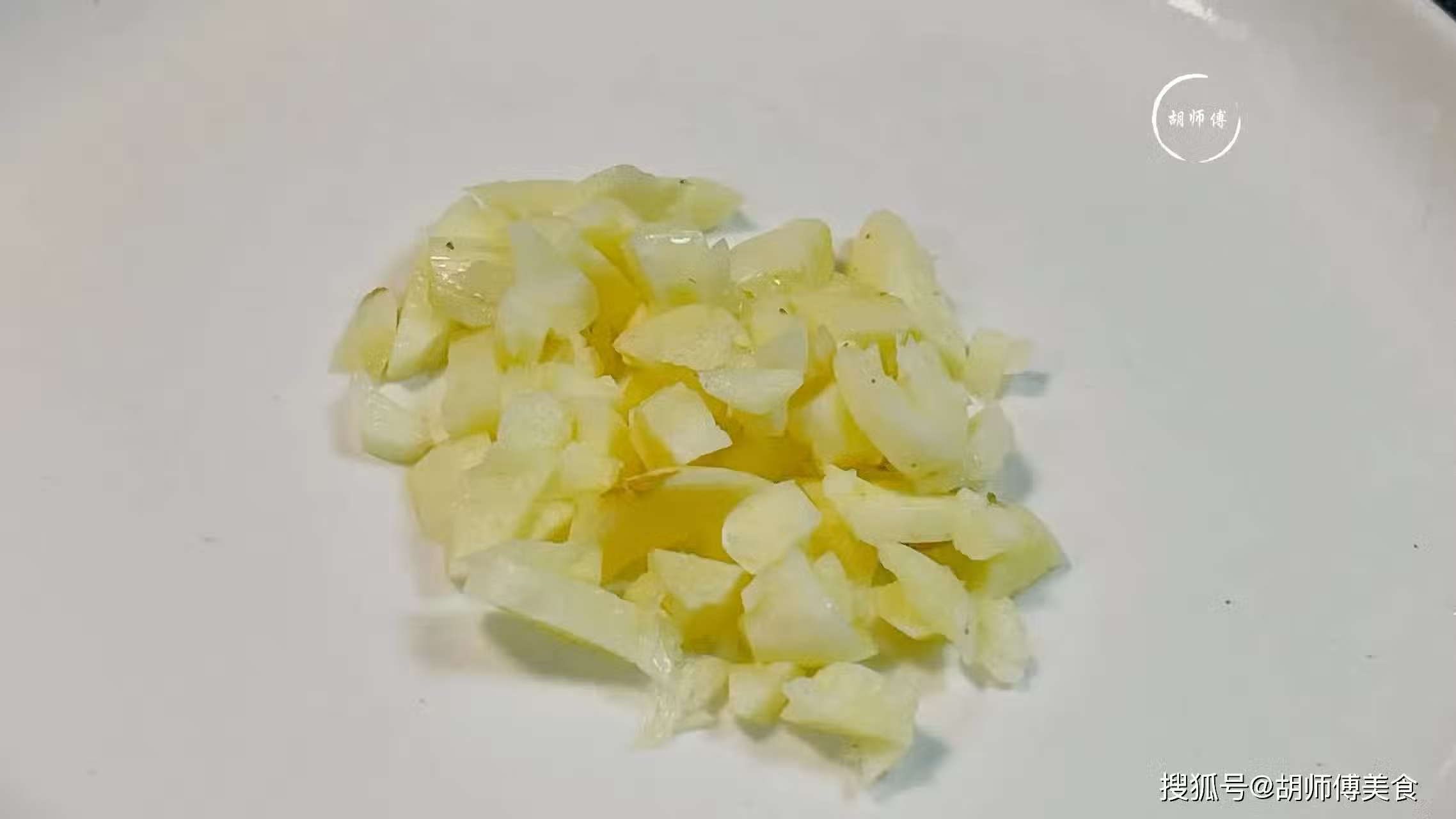 步驟四:把鍋燒熱後,將豬油放入鍋中,等油燒到有少許冒煙時,立即將蒜末放入鍋中炸5-6秒,這樣可以激發出蒜本身的香味。