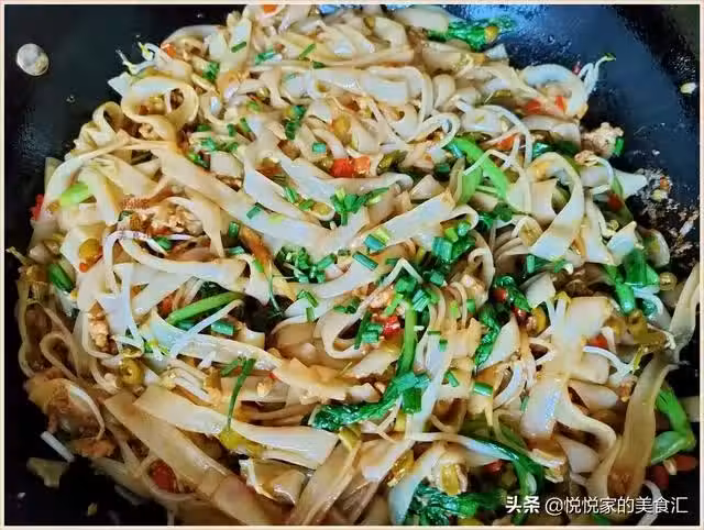 最後就是調味了,放鹽,生抽,老抽,剁辣椒,再次翻拌均勻,最後撒上蔥花就可以出鍋了,這樣炒出來的河粉又香又入味,好吃還不油膩。