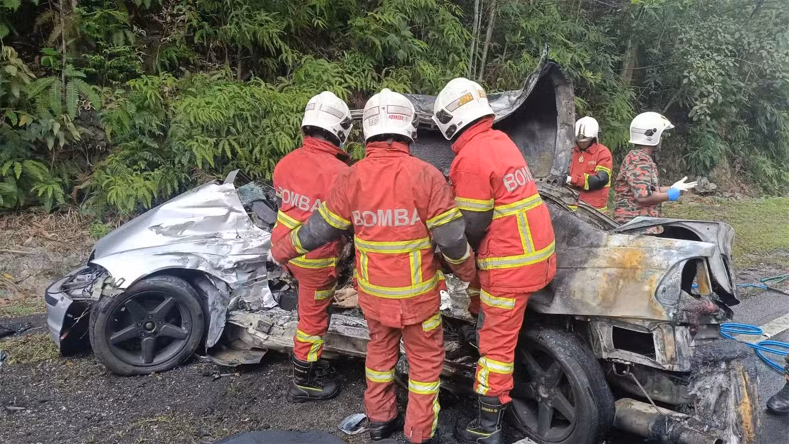 「車禍事故發生後,寶馬車司機與乘客皆被困在車內,被發現時已不幸身亡。」