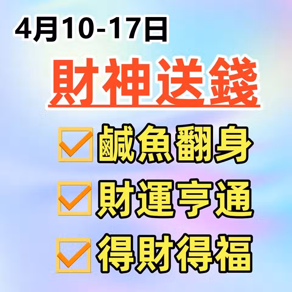 4月10-17日財神送錢,鹹魚翻身財運亨通,得財得福的生肖