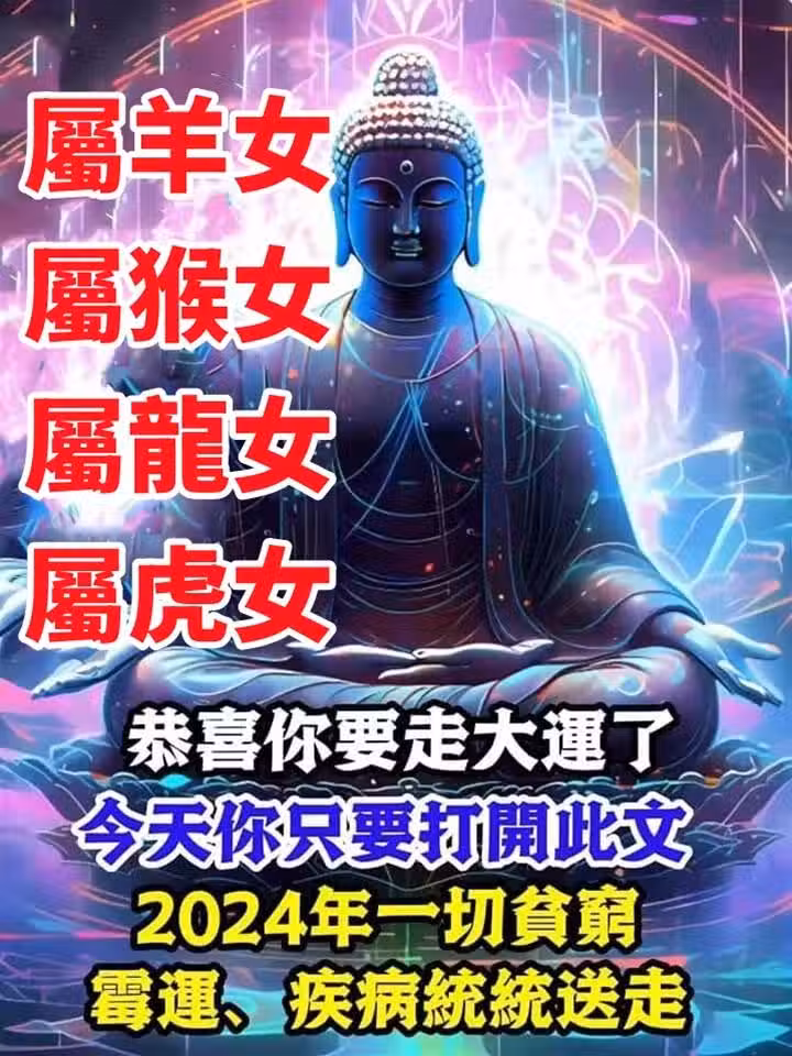 【屬羊女 屬猴女 屬龍女 屬虎女】恭喜你要走大運了!今天你只要打開此文,2024年一切貧窮、霉運、疾病統統送走!