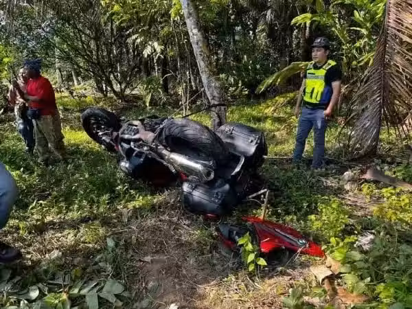 日裡警區主任沙亞里警監指出,初步調查顯示,在昨早9時15分,據信一輛大型摩哆,從日裡路的方向前往達蓬路途中,死者進入了反向的車道,然後失控撞向了一棵樹。