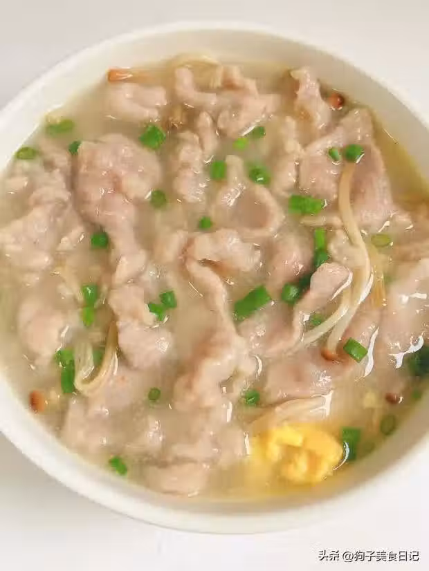 材料:金針菇,肉片,雞蛋,紅薯澱粉,鹽,蔥花。