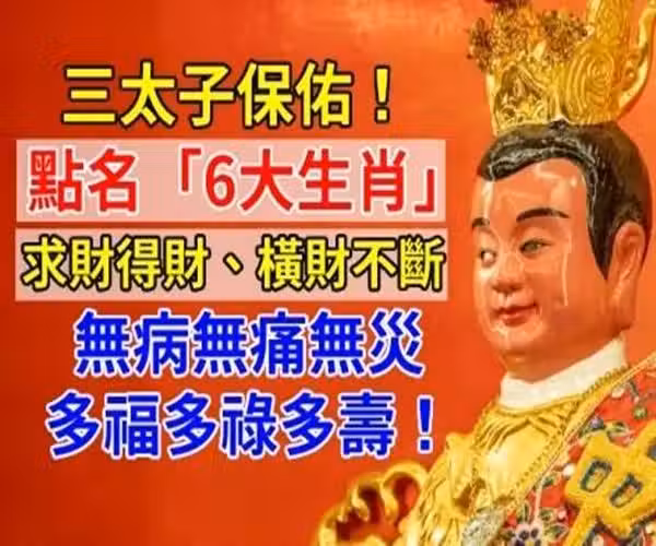 三太子保佑,快點名「6大生肖」求財得財、橫財不斷,無病無痛無災,多福多祿多壽!