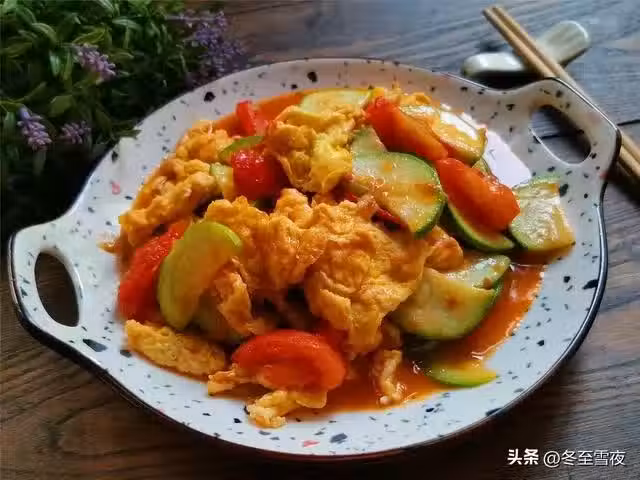 【西葫蘆番茄炒蛋】所需材料:西葫蘆2個、西紅柿2個、雞蛋2個、油鹽適量、小蔥1棵、大蒜2瓣、