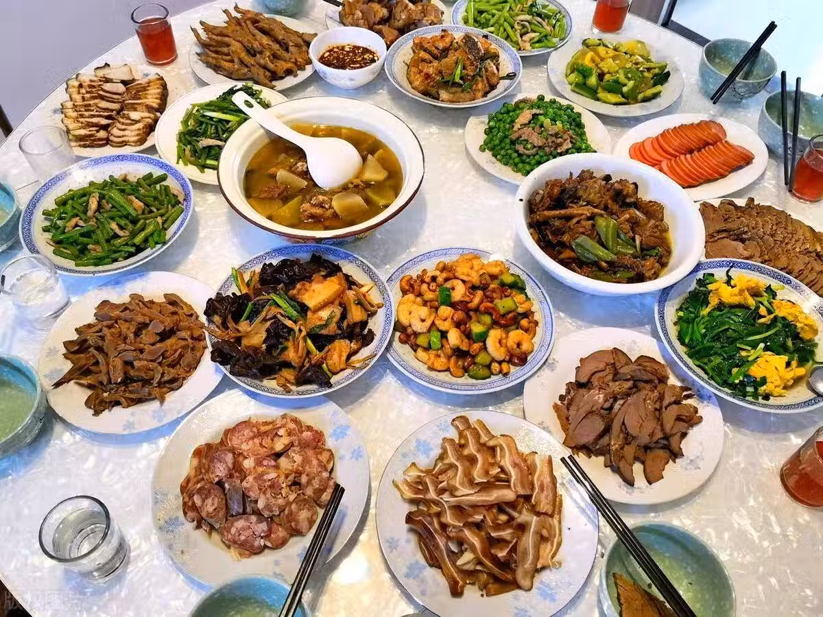 這時候,老公值班也回來了,小姑子也不追劇了,婆婆也關掉電視過來吃飯了。