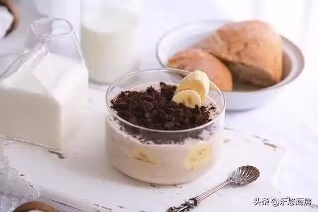 香蕉中含有多種微量元素和維生素,還有植物纖維。對於促進腸胃消化、排便有很好的作用。把香蕉與酸奶一起做成奶昔,口感絲滑,營養加倍。再放一些奧利奧餅乾碎,既好看又好吃。