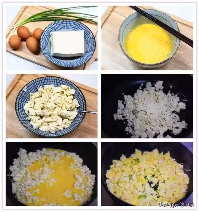第六步:翻炒至蛋液和豆腐融合在一起,變得凝固即可,然後撒上少許香蔥末,再淋上一點香油。