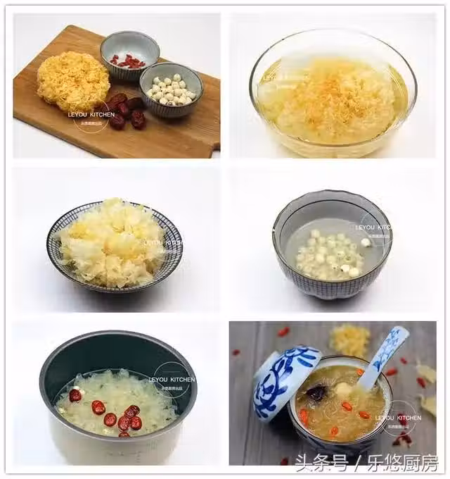 第五步:將銀耳、紅棗、蓮子、冰糖、枸杞一起放入高壓鍋中,再倒入2000毫升清水。然後壓制30分鐘就可以了。