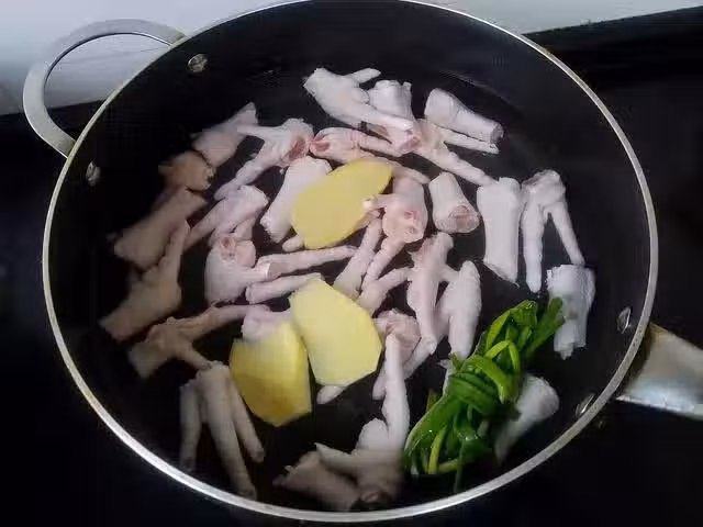 5、3分鐘後撈出焯好的雞爪,用清水多次沖洗,把表面焯燙出來的雜質洗乾淨,洗好後瀝干水待用