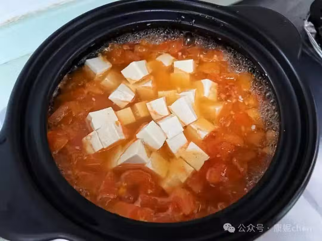 第六步:放入豆腐塊,豆腐塊切小塊容易煮熟。