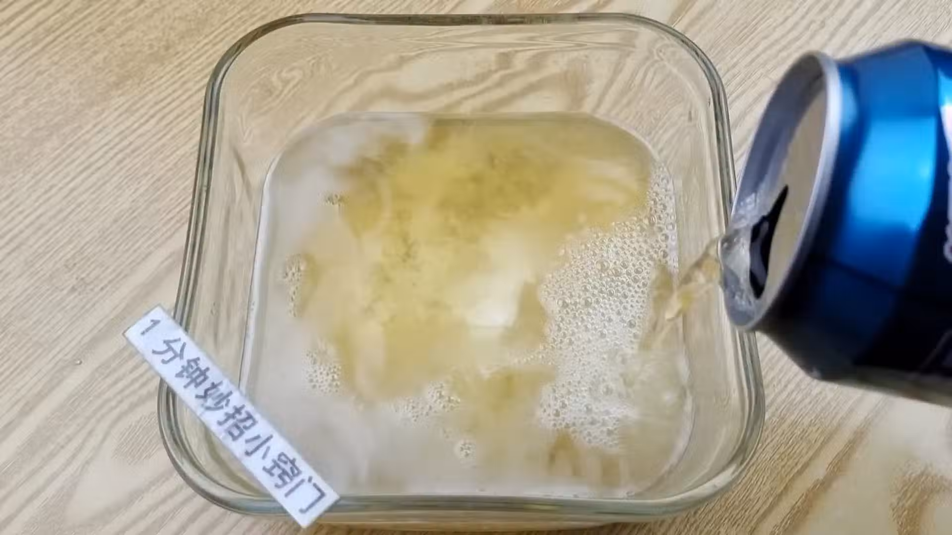 6.然後,我們把裡面的溶液攪拌均勻,讓食用鹽和食用鹼都能夠溶解開,這樣一款清潔下水管道的溶液就調配好了。