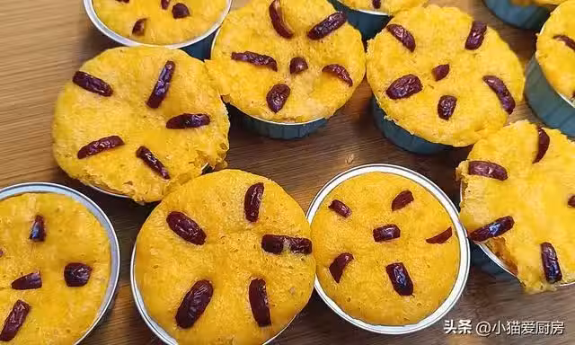 這道做法不一樣的南瓜奶香發糕就做好了,這樣做香甜可口還帶著奶香味,比麵包還柔軟,像彈簧一樣,按壓可以快速回彈,非常好吃。