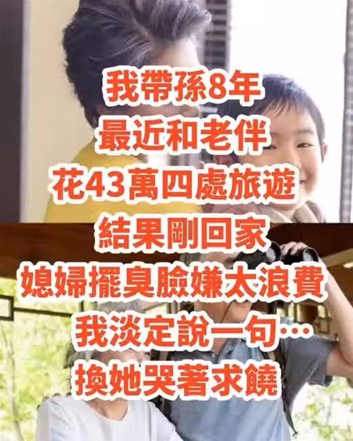 我帶孫8年,最近和老伴花43萬四處旅遊,結果剛回家媳婦擺臭臉嫌太浪費,我淡定說一句…換她哭著求饒~