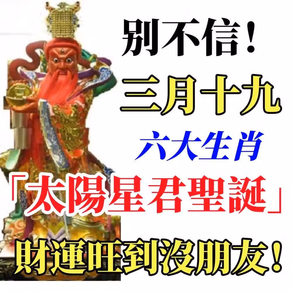 別不信!三月十九「太陽星君聖誕」,這六大生肖「財運旺」到沒朋友!