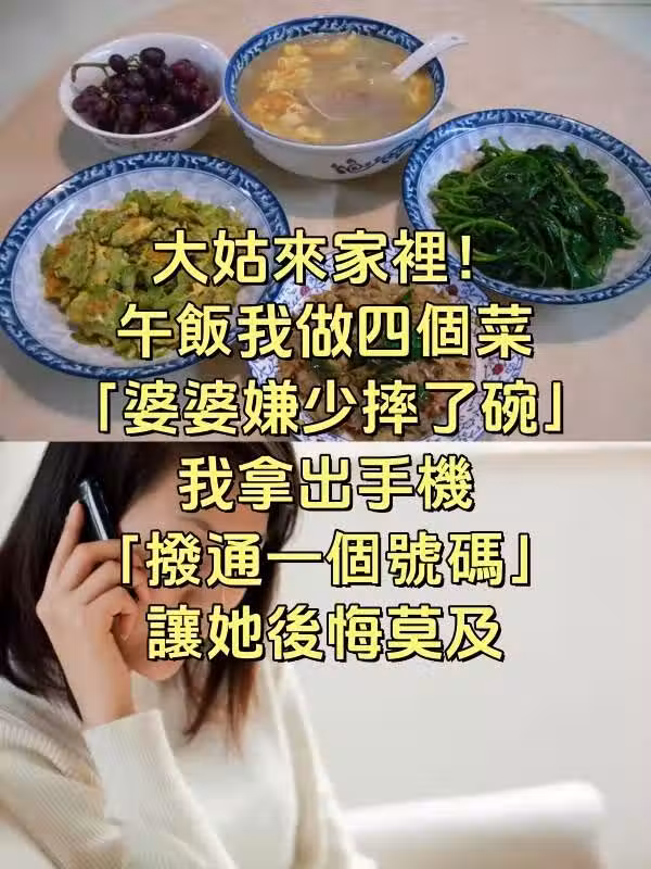 大姑來家裡!午飯我做四個菜「婆婆嫌少摔了碗」 我拿出手機「撥通一個號碼」讓她後悔莫及~