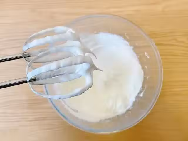 6、先取一小部分蛋白霜倒麵糊盆中,用翻拌的手法混合均勻,切勿畫圈圈,會導致蛋白霜消泡