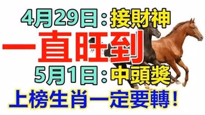 4月29日接財神,一直旺到5月1日中頭獎,上榜生肖一定要轉