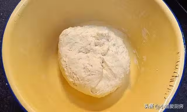 【步驟四】:麵糰醒發10分後,放入2勺植物油,再用手踹一會,讓麵糰把植物油吸收進去,差不多2分鐘左右,蓋蓋繼續醒發10分鐘,然後繼續放入1勺植物油,接著踹,直到麵糰把油都吸收進去,繼續醒發,按照這種方法重複3-4次。