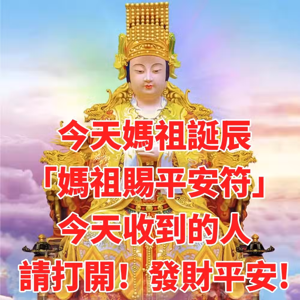 今天媽祖誕辰「媽祖賜平安符」今天收到的人,請打開!發財平安「快接住」!