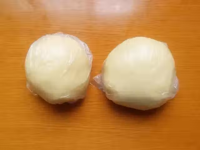 5、5分鐘後,將油皮麵糰和油酥麵糰分別分割成18等份,蓋上保鮮膜,繼續鬆弛5分鐘。