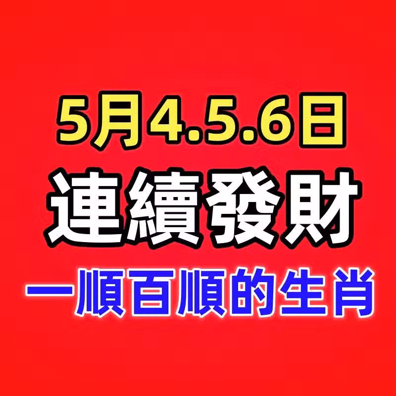 5月4.5.6日連續發財的生肖,天天快樂數錢,一順百順