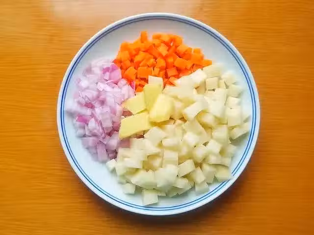 3、鍋內倒入適量的食用油,中火將油溫燒熱後把薑片和洋蔥先下鍋,煸炒出香味來。