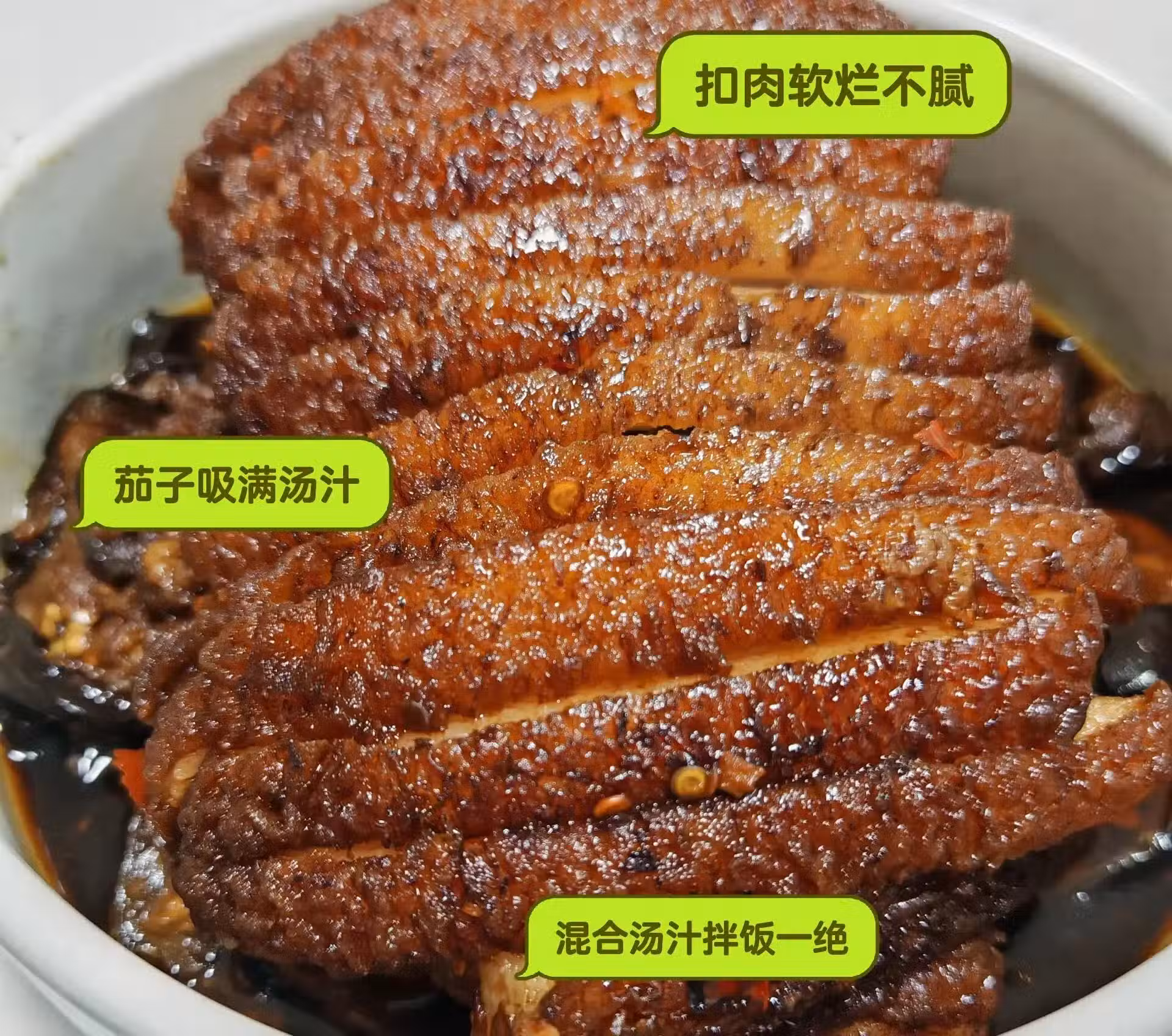 哎呀呀,你看我這口水都流出來了!這茄子干蒸扣肉啊真是太好吃了!大家趕緊動手試試吧!保證讓你吃了還想吃啊!不過啊記得要控制好食量哦別吃太多哈哈!好了不多說了我要去享受我的美食去了!大家下期再見啦!