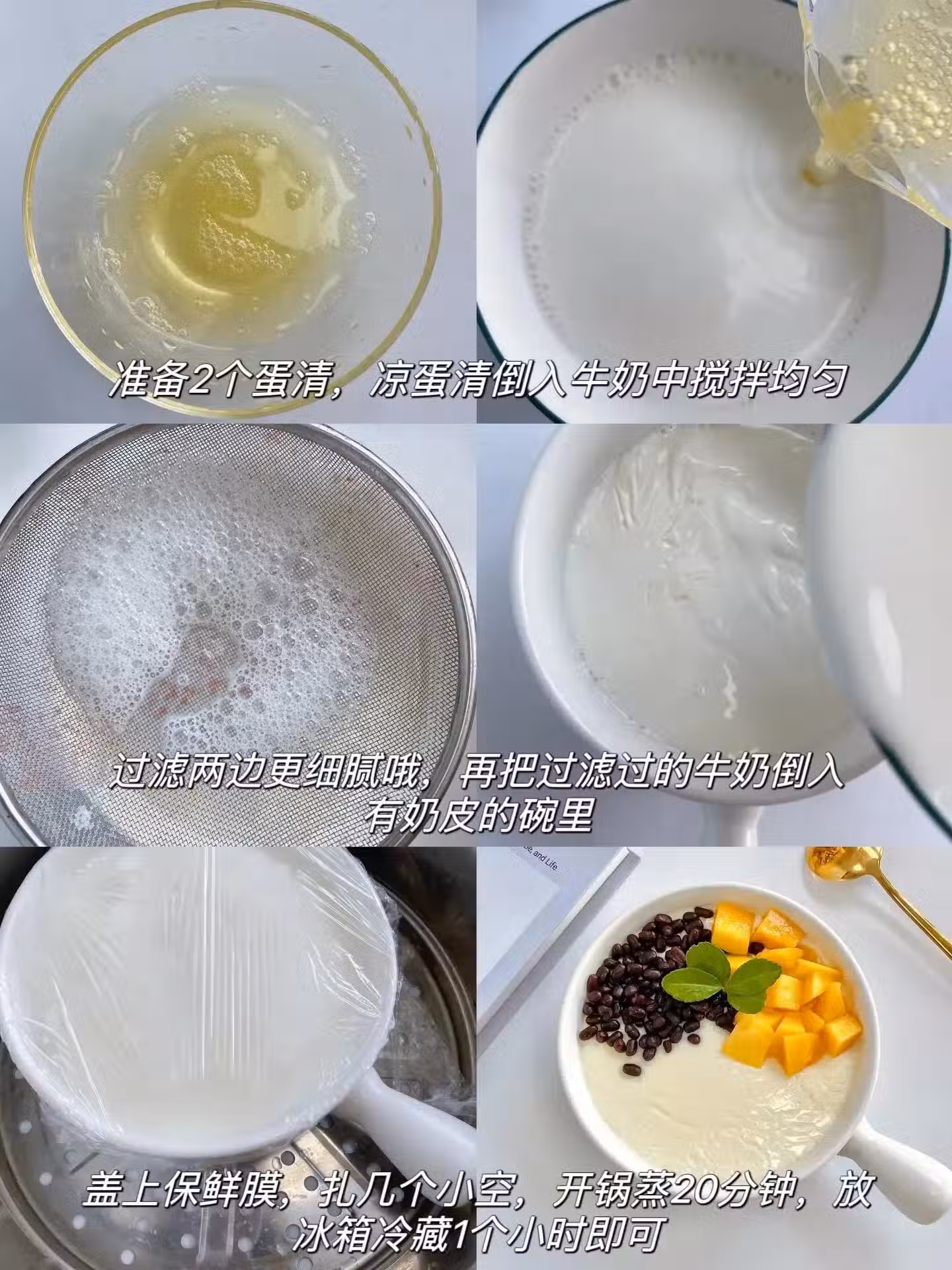 6、蒸好後待涼,然後放入冰箱冷藏1小時,讓雙皮奶更加涼爽可口。