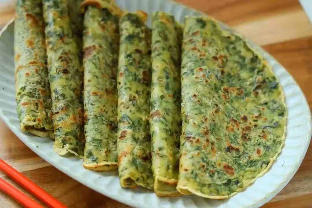 當熱鍋涼油準備就緒後,舀入一勺麵糊,輕輕晃動鍋子,使麵糊均勻鋪展在鍋底。小火慢煎,待一面煎至金黃時,翻面繼續煎至兩面金黃色。此時,花椒嫩葉雞蛋餅的香氣已經瀰漫開來,令人垂涎欲滴。