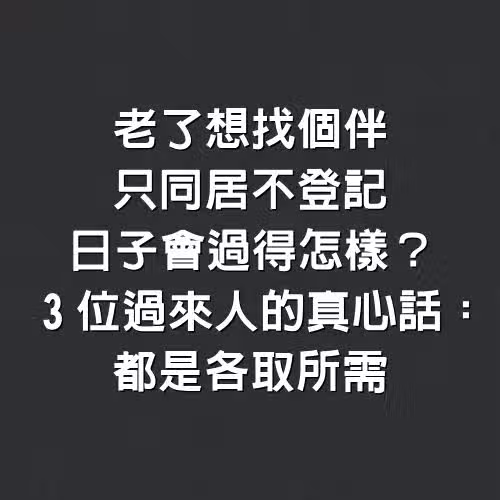 兒女的反對,老人們自己之間的算計,也就讓越來越多的老年人選擇搭夥過日子, 在一起居住,但不領證。